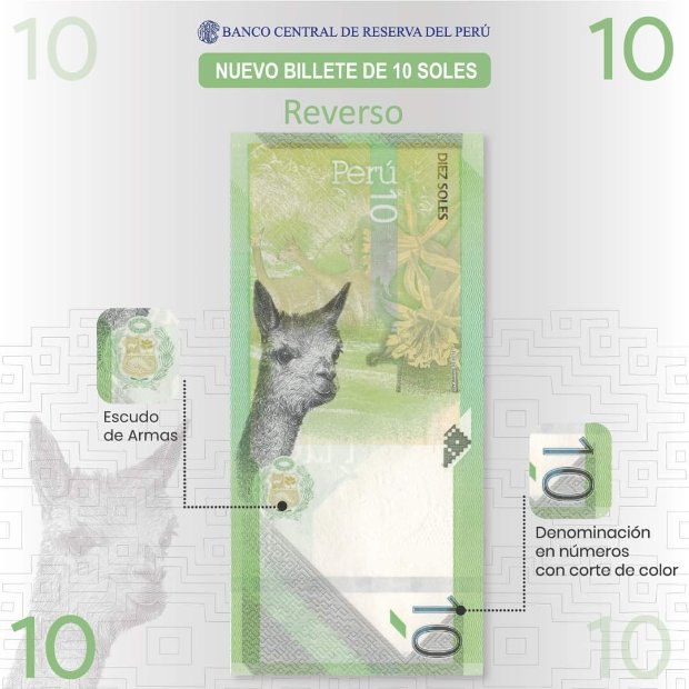 En el reverso figura la imagen de la vicuña, símbolo de nuestra riqueza animal.