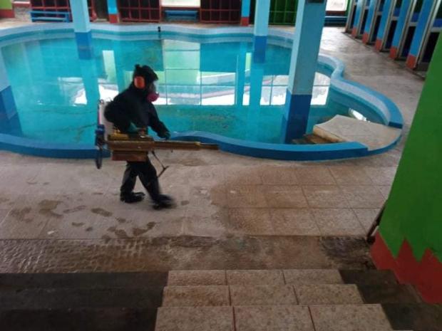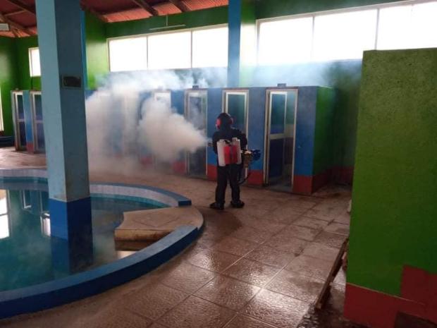 Dejando totalmente desinfectado la infraestructura, así como los espacios de los conocidos baños termales "La Calera" del distrito de Huayllay en nuestra región Pasco, la comunidad campesina de Huayllay trabajó arduamente con el fin de esperar y anunciar su pronta reapertura.
