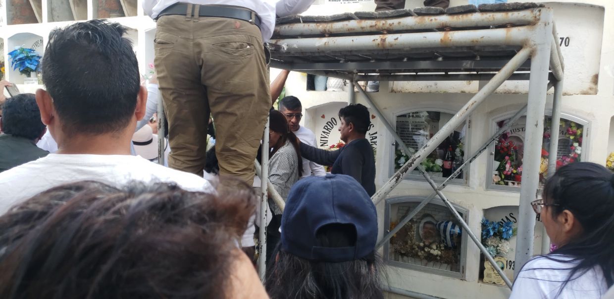 Familiares y amigos cercanos dieron el último adiós al menor Adonis de tan solo 15 años de edad en el Cementerio de Huánuco, hasta donde trasladaron su féretro.